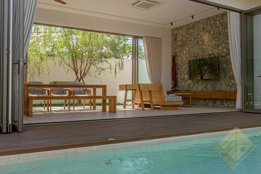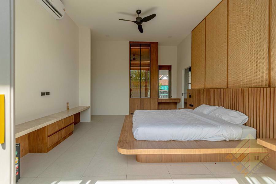 This house is on a land plot of 140 TW (560 sq.m). The house has a private swimming pool, and the village has 24-hour security.
