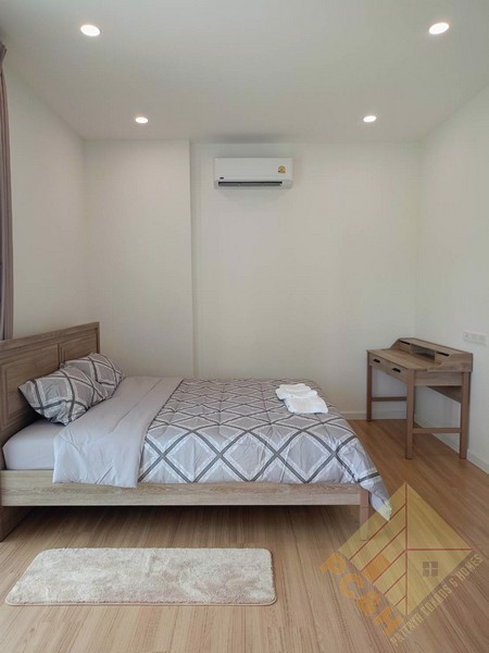 This house sits on a land plot of 50 TW (200 sq.m). There is covered parking and communal swimming pool and a fitness room.