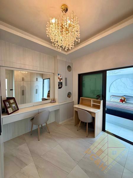 The total land area of this house is 69 TW (276 sq.m). and features a private swimming pool, parking space. The village has 24-hour security personnel.
