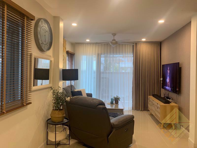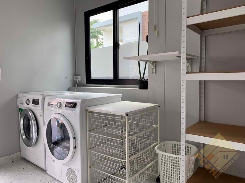 This house sits on a 56 TW (224 sq.m) and comes with parking and a private swimming pool. The village also features a communal pool and fitness room and 24-hour security.
