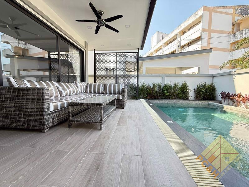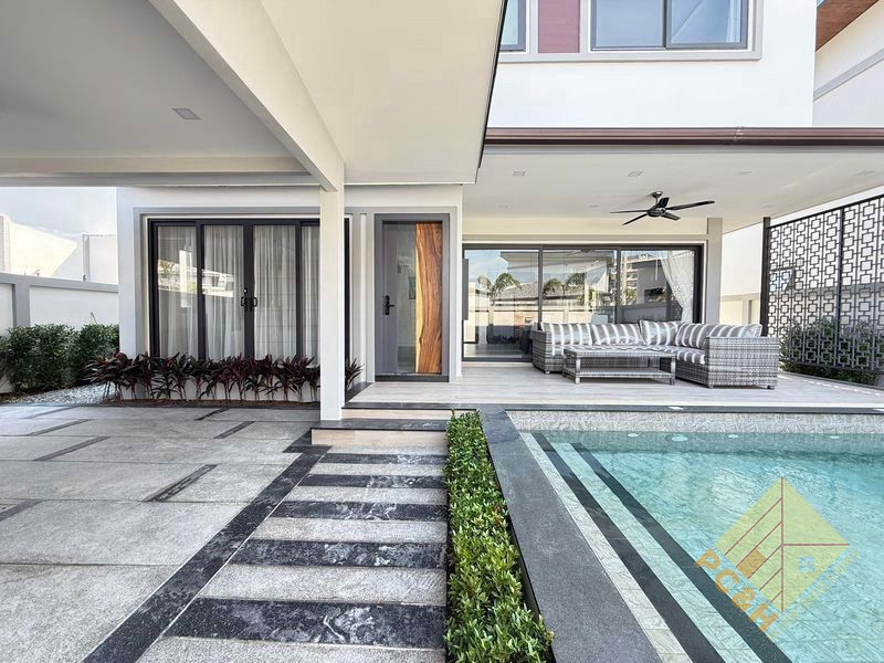 This is a 2-storey luxury pool villa house that has 3 bedrooms and 4 bathrooms with a total living space of 190 square meters.