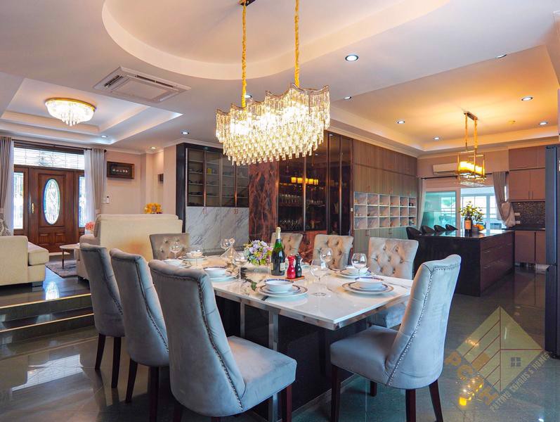 ภายในบ้านสองชั้นที่สวยงามหลังนี้มี 5 ห้องนอนกว้างขวางและ 5 ห้องน้ำทันสมัย พื้นที่ใช้สอยประมาณ 350 ตร.ม. ห้องนั่งเล่นขนาดใหญ่เหมาะสำหรับการพักผ่อนและสังสรรค์ ในขณะที่ห้องครัวสไตล์ยุโรปแบบบิวท์อินครบครันได้รับการออกแบบมาเพื่อตอบสนองทุกความต้องการด้านการทำอาหารของคุณ