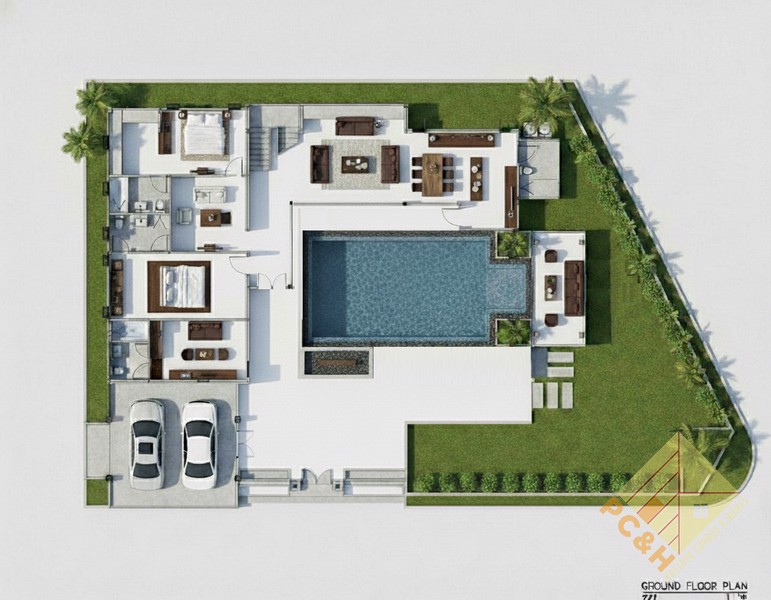ภายนอกบ้านหลังนี้ตั้งอยู่บนที่ดินขนาด 136 ตร.ว. (ประมาณ 544 ตร.ม.) ที่ดินมีสวนเขตร้อนขนาดใหญ่พร้อมสระว่ายน้ำสุดหรู สร้างสรรค์พื้นที่ที่สมบูรณ์แบบสำหรับการพักผ่อน เวลาครอบครัว และการสังสรรค์ นอกจากนี้ยังมีศาลาในสวน ซึ่งเป็นสถานที่เหมาะสำหรับการนั่งพักผ่อนในร่มเงาในวันที่อากาศร้อน หรือเพลิดเพลินกับการพักผ่อนส่วนตัวในยามเย็น บรรยากาศดียิ่งขึ้นด้วยต้นไม้เขตร้อนดั้งเดิมที่ให้ร่มเงาตามธรรมชาติและทำให้สวนทั้งหมดมีเอกลักษณ์เฉพาะตัว รวมถึงที่จอดรถในร่มด้วย