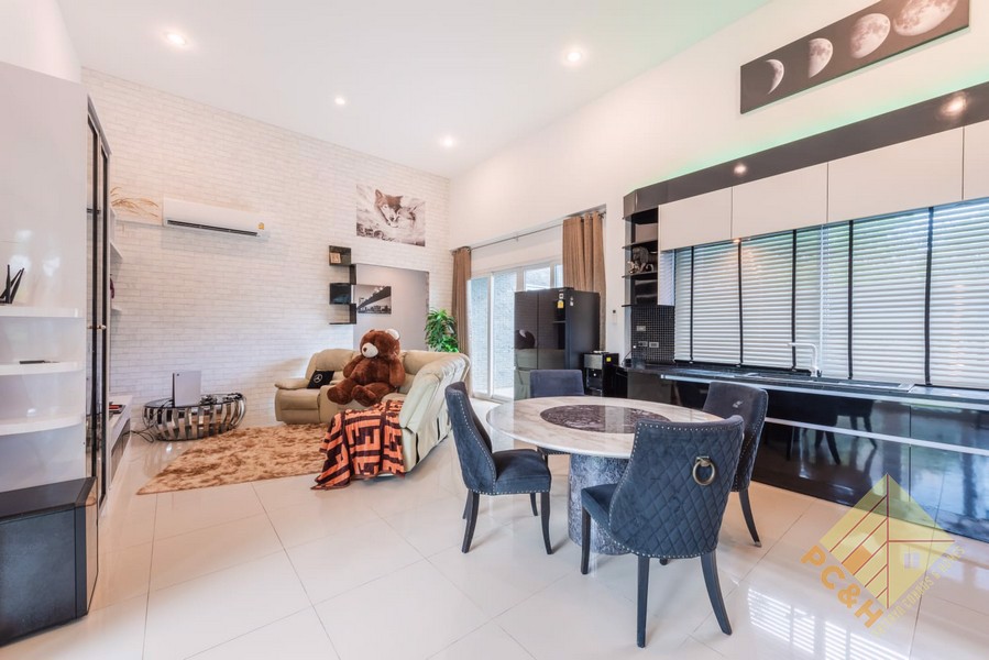 ภายในบ้านหลังนี้เป็นบ้าน 2 ชั้น มี 4 ห้องนอน 5 ห้องน้ำ พื้นที่ใช้สอยรวม 250 ตร.ม. ประกอบด้วยห้องนั่งเล่นกว้างขวาง ห้องเอนกประสงค์ ห้องซาวน่า ห้องออกกำลังกายที่ทันสมัย และห้องครัวสไตล์ยุโรป บ้านได้รับการปรับปรุงใหม่ทั้งหมดและตกแต่งครบครันตามที่แสดงในรูปภาพด้านบน