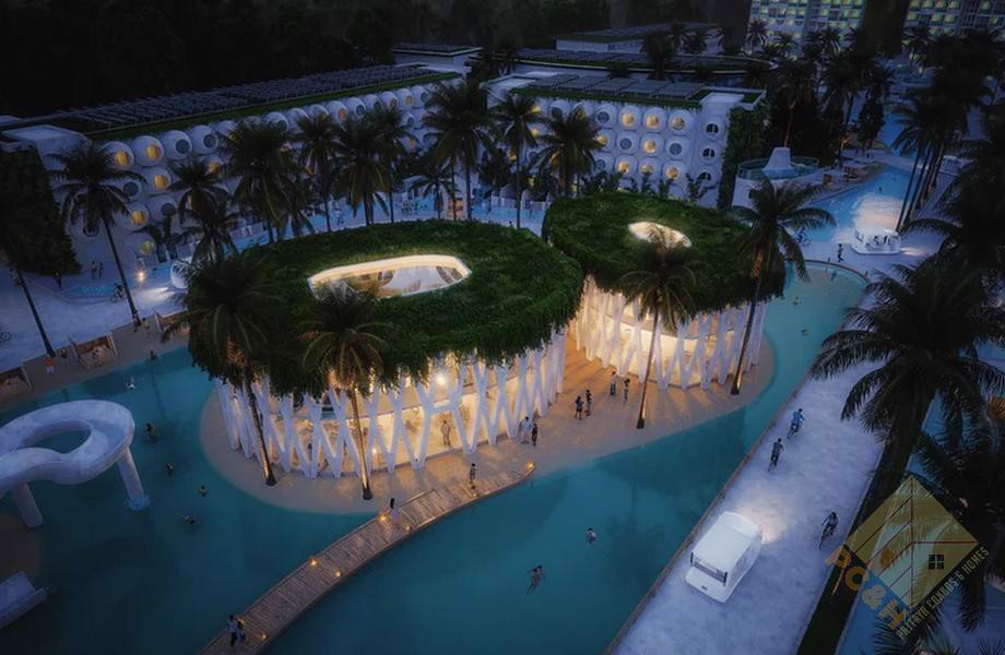 ภายนอกโครงการนี้เน้นสิ่งอำนวยความสะดวกเป็นอย่างมาก โดยมุ่งเน้นการสร้างสภาพแวดล้อมแบบรีสอร์ทที่ครบวงจร:คุณสมบัติหลักทะเลสาบน้ำเค็มเทียมขนาด 200 เมตรขึ้นไป (จุดเด่นของโครงการ)สระว่ายน้ำ รวมถึงสระว่ายน้ำสำหรับเด็กศูนย์ออกกำลังกาย โยคะ และพื้นที่เพื่อสุขภาพสปาและศูนย์สุขภาพและความเป็นอยู่ที่ดีพื้นที่ทำงานร่วมกัน (มากกว่า 1,000 ตารางเมตร)คลับเฮาส์และพื้นที่ส่วนกลางสวนและพื้นที่จัดสวนส่วนประกอบด้านไลฟ์สไตล์และเชิงพาณิชย์ร้านอาหาร คาเฟ่ และบาร์ภายในโครงการศูนย์การค้า รวมถึงร้านสะดวกซื้อไนต์คลับและพื้นที่บันเทิงสิ่งอำนวยความสะดวกสำหรับงานอีเวนต์/MICE และพื้นที่จัดประชุมเวทีดนตรีและสถานที่จัดงานสังสรรค์คุณสมบัติการดำเนินงานแผนกต้อนรับและการจัดการแบบโรงแรมระบบรักษาความปลอดภัยตลอด 24 ชั่วโมงและกล้องวงจรปิดบริการที่จอดรถและการขนส่งแนวคิดภายในปลอดรถยนต์ พร้อมรถกอล์ฟไฟฟ้า/จักรยานไฟฟ้า