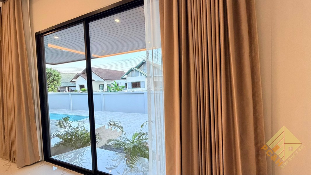 ภายในบ้านหลังนี้เป็นบ้านชั้นเดียว มี 4 ห้องนอน 4 ห้องน้ำ พื้นที่ใช้สอยประมาณ 265 ตร.ม. มีห้องครัวสไตล์ยุโรป และตกแต่งพร้อมเฟอร์นิเจอร์บิวท์อินที่ทันสมัยตามที่แสดงในรูปภาพด้านบน