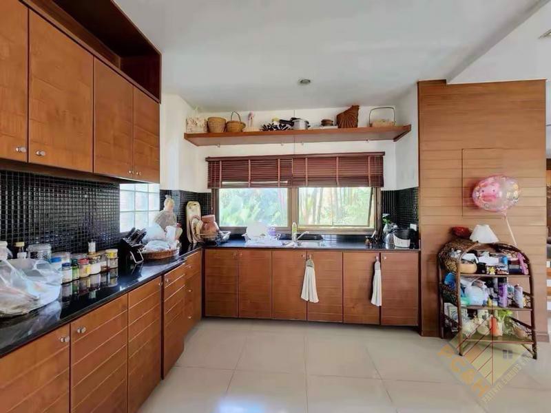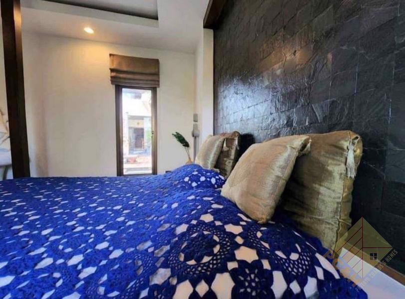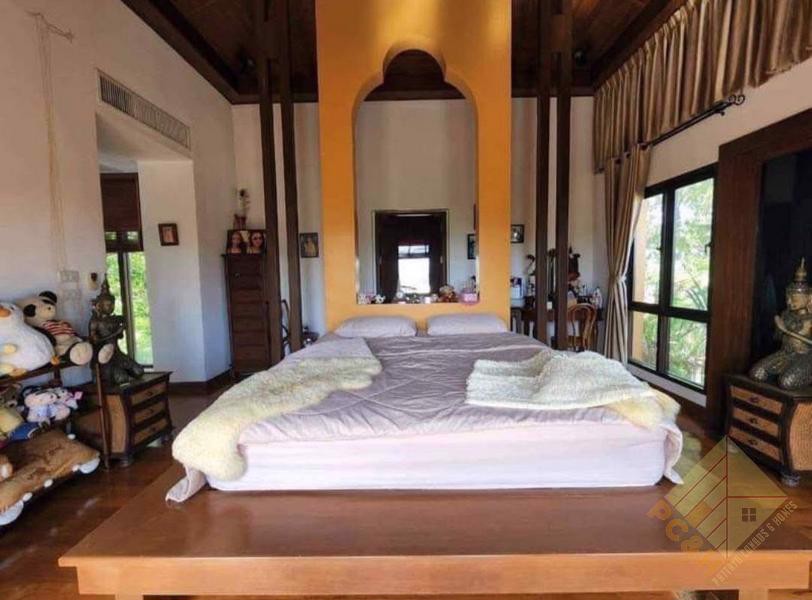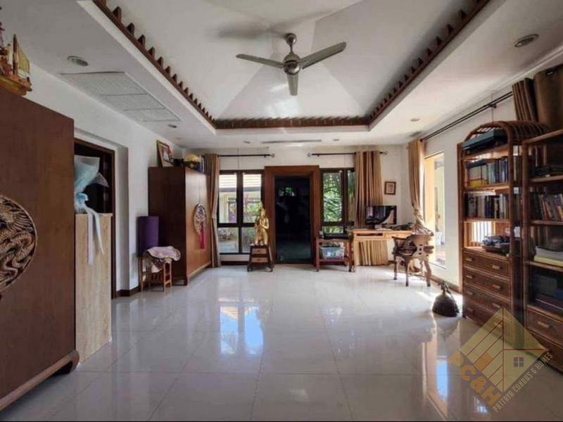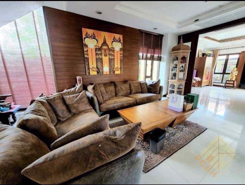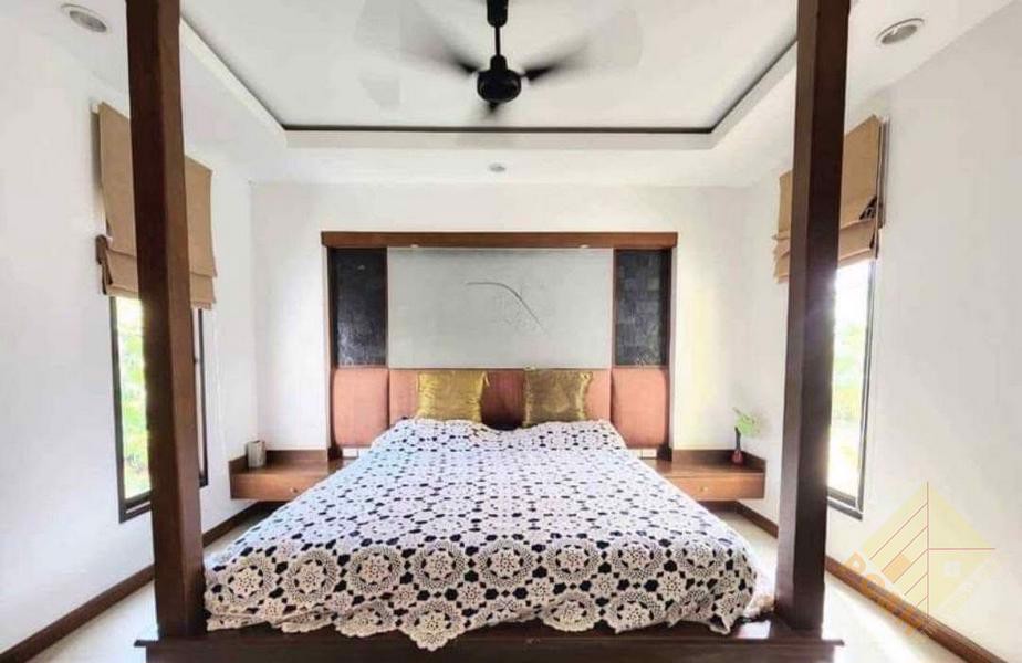 ภายในบ้านหลังนี้เป็นบ้านที่โอ่อ่า มี 6 ห้องนอนกว้างขวางและ 6 ห้องน้ำ ตั้งอยู่บนพื้นที่ใช้สอยกว้างขวางถึง 450 ตร.ม. การออกแบบภายในผสมผสานสไตล์โมเดิร์นเข้ากับกลิ่นอายไทยดั้งเดิม สร้างบรรยากาศที่เป็นเอกลักษณ์และหรูหรา ห้องนั่งเล่นขนาดใหญ่และห้องครัวที่ครบครันช่วยเพิ่มความรู้สึกกว้างขวาง ทำให้บ้านทั้งสวยงามและใช้งานได้ดีเยี่ยม บ้านหลังนี้เหมาะสำหรับครอบครัวที่ต้องการความเป็นส่วนตัวและความสะดวกสบาย ดังที่เห็นได้จากภาพด้านบน