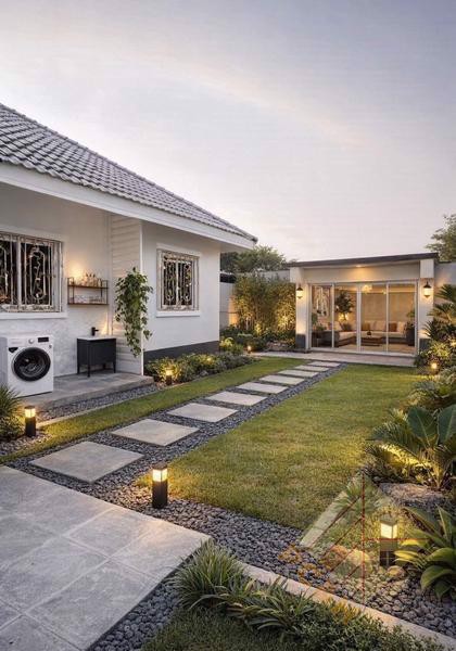 ภายในบ้านชั้นเดียวหลังนี้มี 3 ห้องนอน 3 ห้องน้ำ พื้นที่ใช้สอย 200 ตร.ม. และตกแต่งครบครันตามที่แสดงในรูปภาพด้านบน