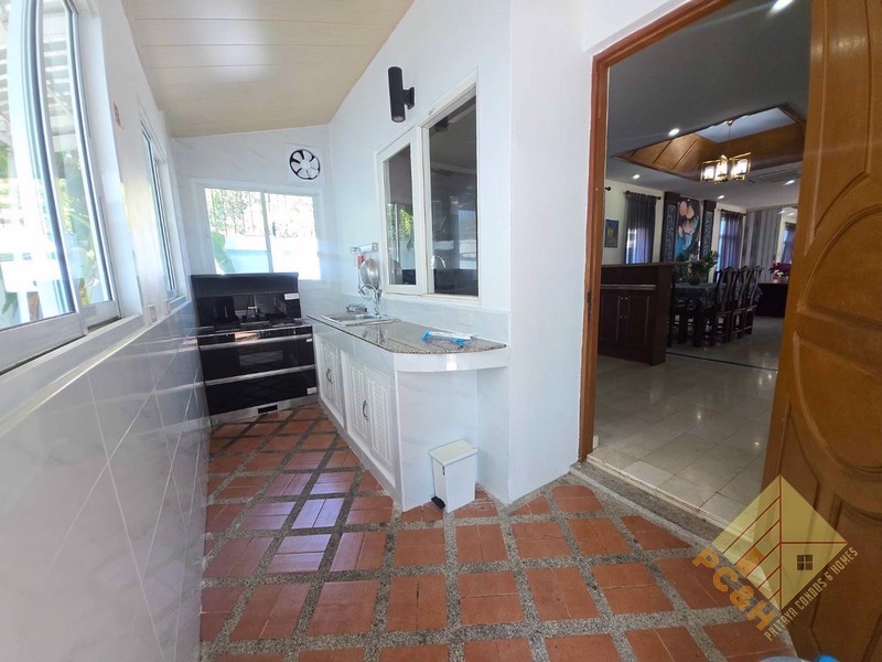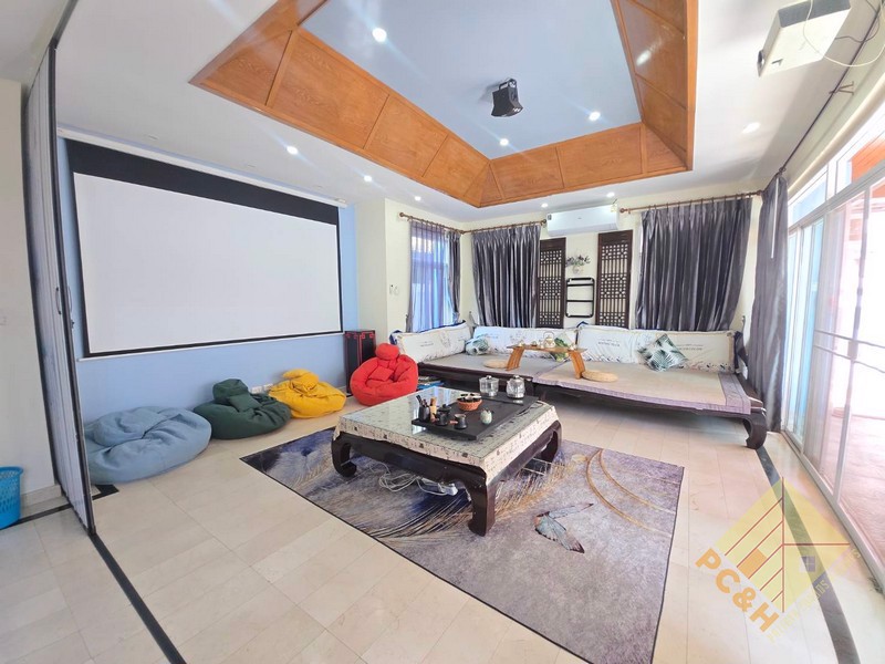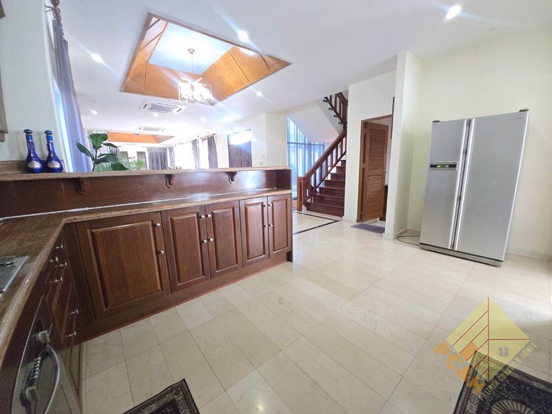 ภายในบ้านหลังนี้เป็นบ้านสองชั้น มี 3 ห้องนอน 4 ห้องน้ำ และห้องแม่บ้าน 1 ห้องพร้อมห้องน้ำในตัว พื้นที่ใช้สอยกว้างขวางประมาณ 480 ตร.ม. ประกอบด้วยห้องนั่งเล่นขนาดใหญ่ ห้องครัวสไตล์ไทย/จีน และห้องครัวสไตล์ตะวันตก การตกแต่งภายในสวยงามและครบครัน สร้างบรรยากาศอบอุ่นและน่าอยู่ ดังแสดงในภาพด้านบน