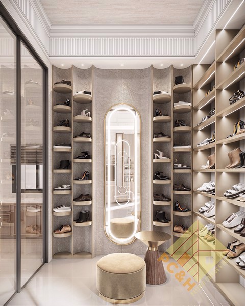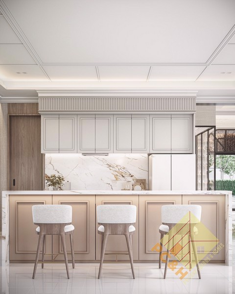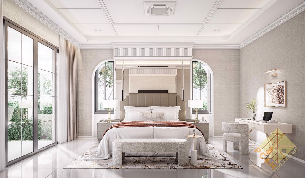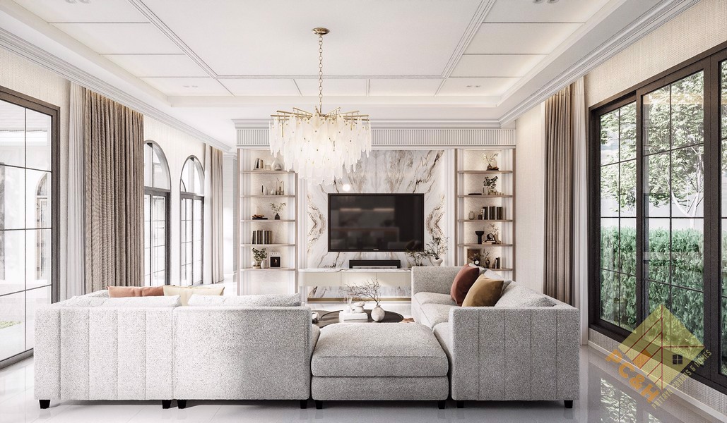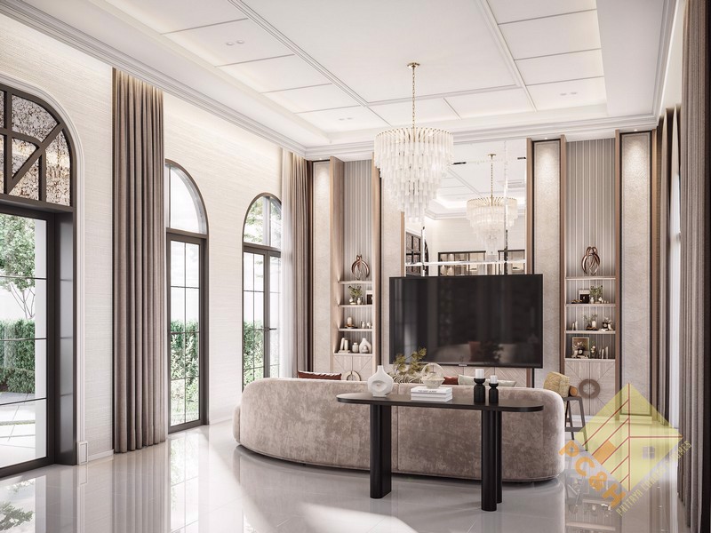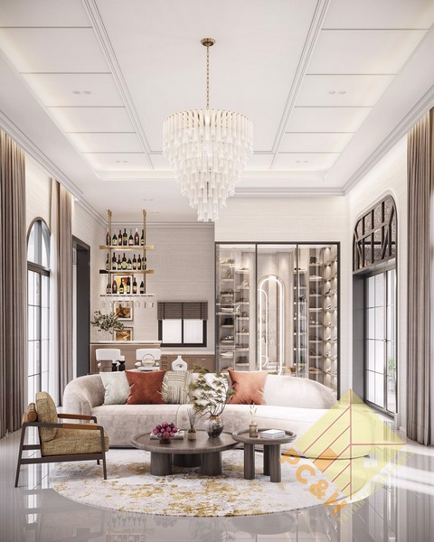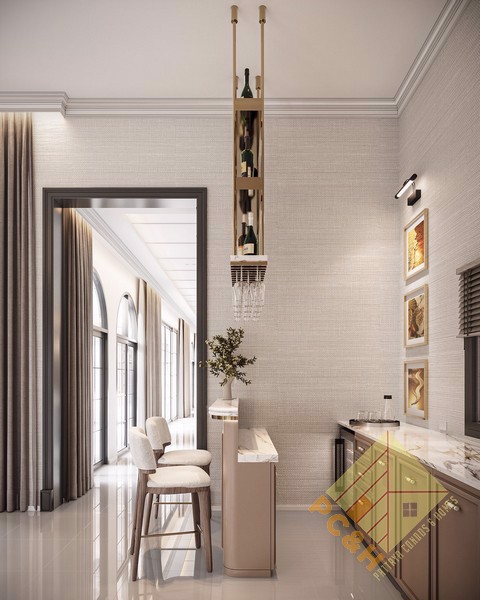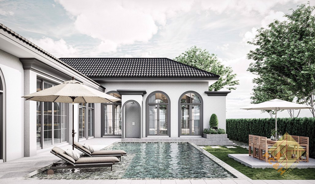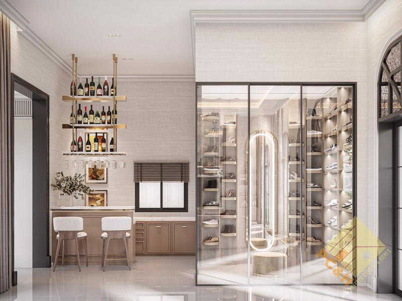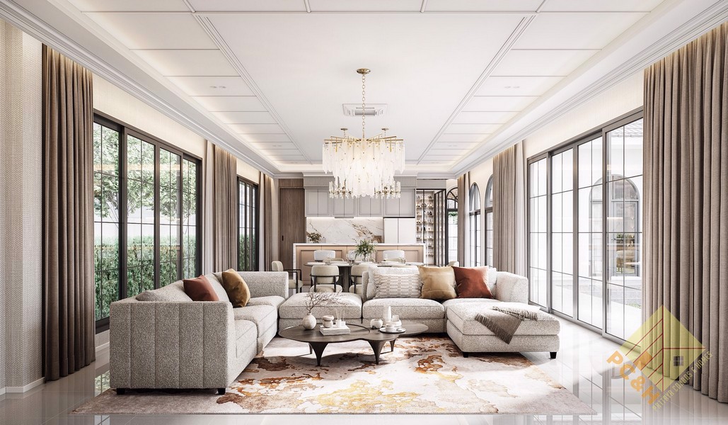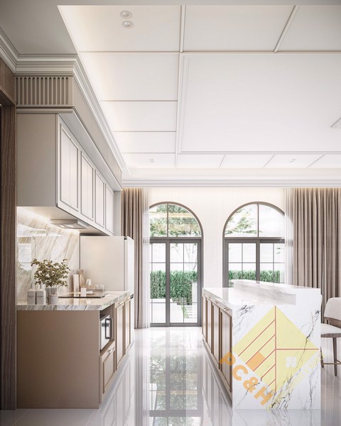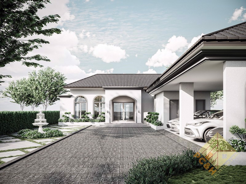 ภายในบ้านชั้นเดียวหลังนี้มี 5 ห้องนอน 6 ห้องน้ำ พื้นที่ใช้สอยกว้างขวาง 543 ตร.ม. การตกแต่งภายในออกแบบด้วยห้องนั่งเล่นแบบเปิดโล่ง เพดานสูง และแสงธรรมชาติส่องถึงทั่วทั้งบ้าน บ้านหลังนี้มีทั้งห้องครัวสไตล์ยุโรปและห้องครัวสไตล์ไทยแยกต่างหาก จัดวางอย่างลงตัวเพื่อการใช้งาน มาพร้อมเฟอร์นิเจอร์หรูหราครบครันตามที่แสดงในรูปภาพด้านบน