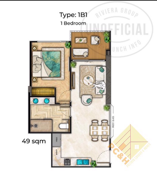 ห้องชุดนี้มีพื้นที่ใช้สอย 49 ตร.ม. เป็นคอนโดมิเนียม 1 ห้องนอน 1 ห้องน้ำ อยู่บนชั้น 9 มองเห็นวิวทะเล และตกแต่งพร้อมเฟอร์นิเจอร์ครบครัน