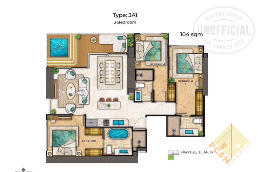 ห้องชุดนี้มีพื้นที่ใช้สอย 104 ตร.ม. เป็นคอนโดมิเนียม 3 ห้องนอน 3 ห้องน้ำ ตั้งอยู่บนชั้น 37 และตกแต่งพร้อมเฟอร์นิเจอร์ครบครัน