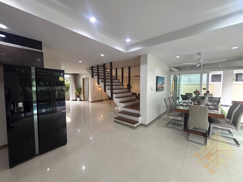 ภายในบ้าน 4 ห้องนอน 5 ห้องน้ำ พื้นที่ประมาณ 250 ตร.ม. พร้อมครัวยุโรปขนาดใหญ่ภายใน และเฟอร์นิเจอร์ครบครันดังที่เห็นในภาพ